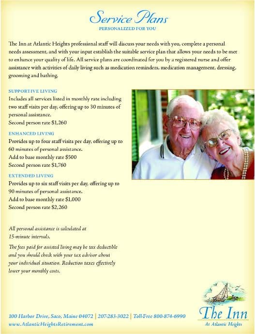 The Inn at Atlantic Heights offers a choice of 64 Assisted-Living Apartments featuring companion suites, studios, one-bedrooms and two-bedrooms, all with the comforts of home. You can choose from an impressive array of services and amenities that best fit your lifestyle and enhance your health and well-being.